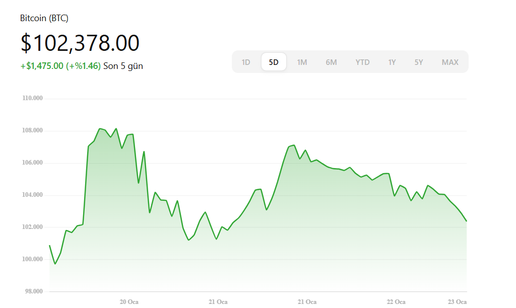Ancak, yüksek volatilite nedeniyle, kısa vadeli yatırımcıların piyasayı takip edip, risklerini yönetmeleri önerilir. BTC/USD paritesi şu an 102.378 USD’den işlem görüyor.