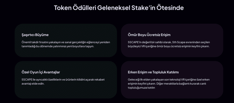 Ön satışta tahakkuk eden staking ödülleri, yatırımcılar tokenlerini 2025’e kadar 8 ay boyunca tutmadığı müddetçe geçerli olmaz. Tokenleri tutma mekanizması, yeni çıkan coinler arasındaki 5SCAPE token üzerinde sadece alış baskısı olacağı anlamına gelir.