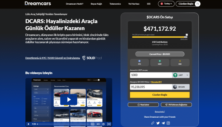 Dreamcars ($DCARS), lüks otomobil yatırımlarını merkeziyetsiz bir yapıyla yöneten yenilikçi bir DAO projesidir. Bu proje, lüks araçlara yatırım yapmak isteyenler için devrim niteliğinde fırsatlar sunuyor. Dreamcars, en iyi DAO projeleri arasında kendine sağlam bir yer edinmiştir.